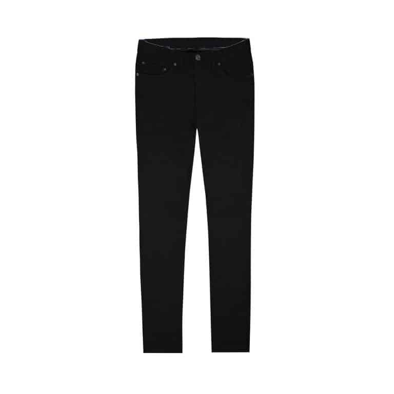 Pantolon: Marka, arma, baskı, desen olmayan, düşük bel olmayan ve boru paça siyah pantolon (vücut hatlarını belli etmeyen rahat kesim kot, keten, kumaş)